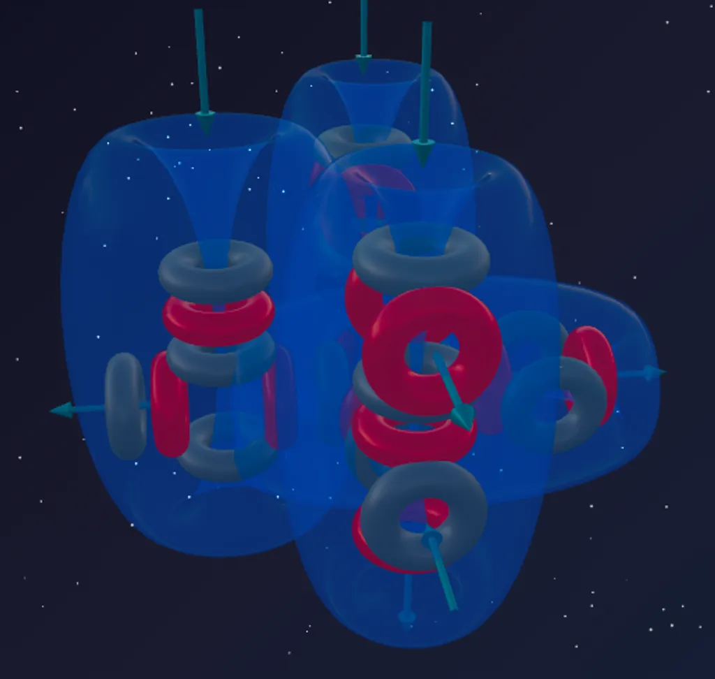 • 1 asymmetric high-pressure discharge fountain — created by the rotated alpha particle.